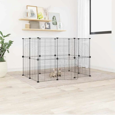General description This trusty pet cage provides a spacious and safe enclosed space for your lovely pets to exercise, play, and rest. Made of sturdy powder-coated steel, this durable cage ensures years of use with minimal maintenance. The design features multiple panels, allowing you to assemble it into any shape and size you desire, offering plenty of room for your pets to play and rest safely within the boundaries. The practical door enhances convenience for pet care. Technical specifications Colour: Black Material: Powder-coated steel Panel size (each): 35 x 35 cm (L x H) Grid height (each): 1.5 cm Delivery contains: 20 x Panel 40 x Connector 20 x Floor protector 66 x Tie rib 2 x Door clip Other information Each product comes with an assembly manual in the box for easy assembly.
