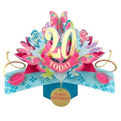 20 Today Happy 20th Birthday Pop Up Greeting Card Love Kate's Cards Her Design POP236MC20
