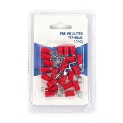 Pre-insulated electrical connections for secure and durable connections. [Resilience] and [Quality] Guaranteed (20pcs, Model RV1.25-4). [Pre-insulated red terminal RV1.25-4] (20 pcs) - [Electrical Connections] [Robust] for [Secure Connections] and [Durable]. [Ideal for any project]. Red Pre-Insulated Terminal RV1.25-4 (Pack of 20) - [Electrical connections] safe and durable. [Easy Installation]: [Easy to use]! [Pre-Insulated Red Terminal RV1.25-4 (20 Pack)] - [Electrical Connectors] [Heavy Duty] for [Safe] and [Durable] Connections. [Quality Guarantee]. 5. Recommended uses or applications: - Perfect for [electrical installations] in [home] and [offices] (20 pack). Secure [secure and durable connections].