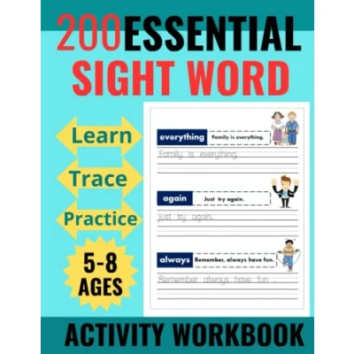 200 Essential Sight Words Activity Workbook For Kids 5 8 Ages: Learn, Trace & Practice The Most Common High Frequency Learning To Write Read