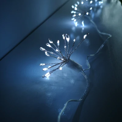 200 LED 2.25m Premier MicroBrights Starburst Lights available in Cool White, Warm White and Rainbow. LEDs are at the tips of pin wires which can be adjusted to create a stunning starburst effect. 10 starbursts over 2.25m of clear cable, enabling these to easily blend into any setting. Requires 3x AA batteries (not supplied). Choose between 8 Functions; static, waves, sequential, chasing, twinkling, steady on, slow glow and slow fade.. Energy efficient; ECO friendly non-replaceable LEDs with a built in 6 hour on / 18 hour off timer function. 25cm spacing between each starburst, with 55cm of cable from the battery pack to the first starburst. *All measurements are approximate and may differ slightly. Suitable for indoor and outdoor use, all year round!. A stunning addition to any Christmas display