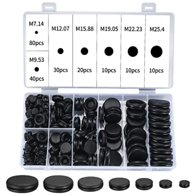 200 Pieces Rubber Grommets Kit, Black Hole Plugs Electrical Wire Gaskets Assortment for Car, Boat, Pump, Plumbing, Cables Plugs, Wiring, Conductor