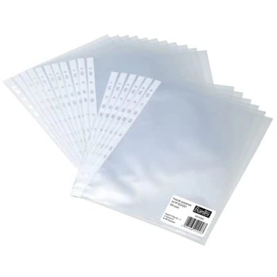 DIN A4 transparent case with reinforced universal perforation Films matt and grained, transparent Transparent document sleeves for practical storage of unpunched documents in folders and ring binders Arrangement of the position of the opening side: top 200