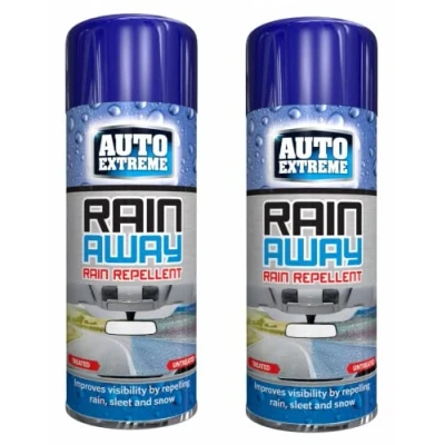 Helps to improve visibility, especially in wet conditions both day and night. Rain Away Repellent improves wet weather visibility and safety by creating an invisible hydrophobic coating to repel rain, sleet, and snow. The coating also makes for easy removal of ice, salt, mud and bugs. It is ideal for car windscreens, side and rear windows and even headlight covers. Simply apply the treatment to exterior glass using a cloth and wipe onto the windscreen/windows using a firm, circular motion. Allow to dry and then buff with a dry cloth, wiping until clear. External glass treatment that repels rain, sleet and snow so it easily runs off the windscreen, allowing for clearer visibility in wet weather. Watch the raindrops fly off your windscreen while driving along. You can also use this on your glass shower door to stop soap scum from sticking.