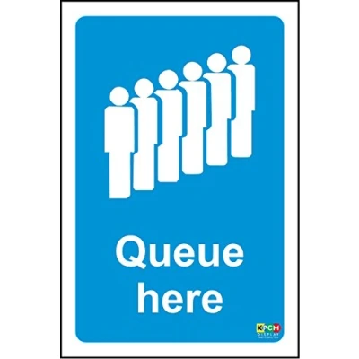 Queue Here Sign 200mm x 133mm Self adhesive vinyl Remove backing film and apply to dry, smooth, oil free surface. Digitally printed and laminated for extra durabillity