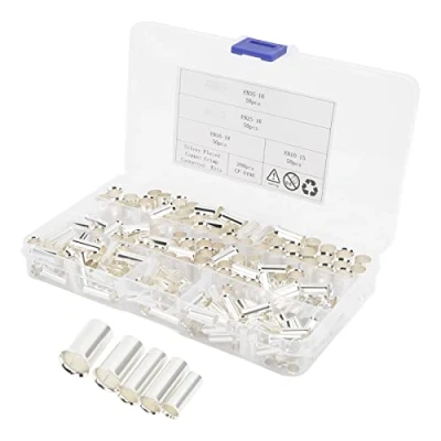 【Package Content】: This set includes 50pcs EN10‑15 AWG 8, 50pcs EN16‑18 AWG 6, 50pcs EN25‑16 AWG 4, 50pcs EN35‑16 AWG 2.Cable ferrules wrap your wires, eliminating loose wire strands and taking installation cleanliness to a new level. 【Premium Material】: Wire ferrules end terminals are made of high quality copper material with excellent electrical conductivity.Professional manufacturing, fine workmanship, quality, stable performance, and worthy of your trust. 【Simple Use】: Silver plated, oxidation resistant, ferrules designed with insulating flares make wire insertion easier and prevent wire ends from fraying or breaking. 【Wide Application】: 200 wire terminals including 4 wire crimp connectors will meet all your needs. Widely used in car amplifiers and home appliances. 【Easy and Safe Use】The Electrical Crimp Terminals are made of pure copper ensures the highest conductivity.Butt connectors uses chamfered barrel ends to provide fast easy wire insertion from both ends and a built in wire stop for correct positioning.Butt Connectors are works good when building custom wire harnesses or making repairs to existing wiring.with special matte tinned process will protect your butt splices from corrosion.