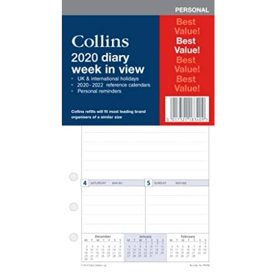 2020 Week to View Refill for Personal Size Organiser (6 Ring Mechanism)
