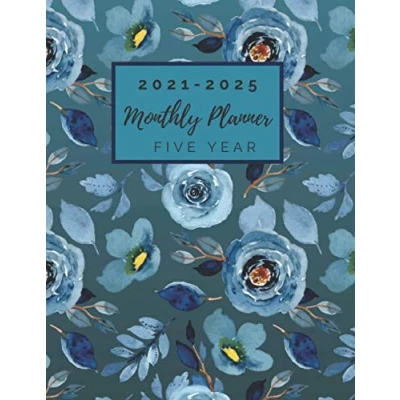 2021 2025 Five year Monthly Planner: 5 calendar 2020 2025, Large Size 8,5x11 in Blue Flower Cover