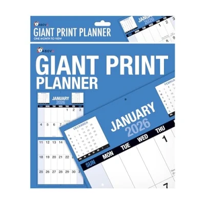 🔎 Giant Print for Easy Reading – Extra-large text and numbers make this calendar ideal for clear visibility at a distance. 📅 Month to View Layout – See the entire month at a glance with generous space for daily notes and appointments. 🌀 Spiral Bound for Convenience – Durable spiral binding allows for easy page turning and secure wall hanging. 📘 Blue & White Clean Design – Modern, professional look suitable for any home, office, school, or business environment. 🇬🇧 Includes UK Holidays & Notable Dates – Stay informed with clearly marked public holidays and key events throughout 2026. 🏠 Perfect for All Settings – Ideal for families, seniors, students, and professionals who prefer or need larger print.