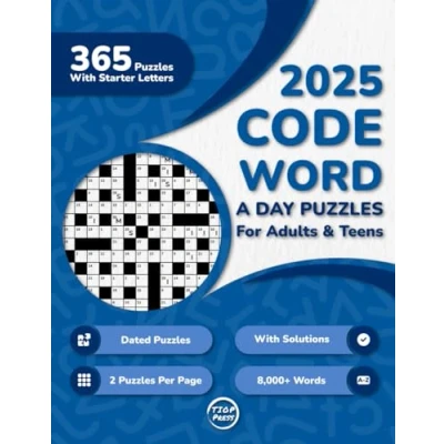 2025 Codeword A Day Puzzle Book for Adults: 365 Dated Large Print Puzzles With Starter Letters and Solutions Adults, Seniors, Teens (2 Per Page)