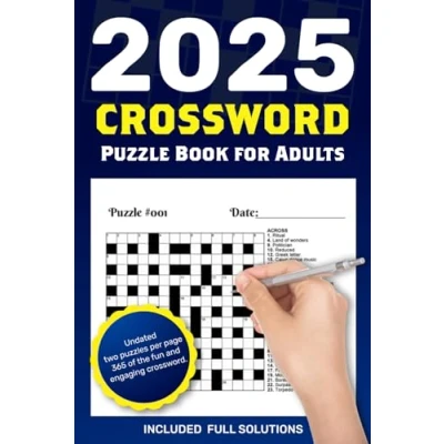 2025 Crossword Puzzle Book for Adults: Large Print 365 Undated 2 Puzzles Per Page Adults and Seniors with Solutions