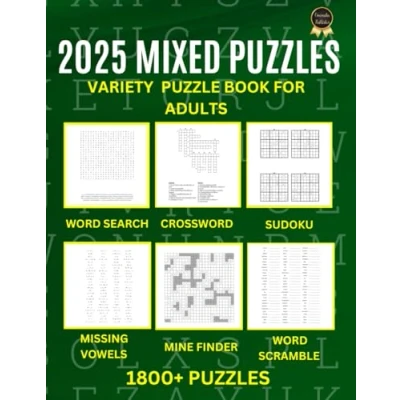 2025 Mixed Puzzle Book For Adults And Seniors 1800+ Puzzles: Activity Word Search Crossword Sudoku Missing Vowel Mine Finder Scramble Fun Games To Keep The Brain Active