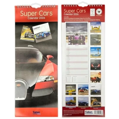 2025 Super Slim Month to View Spiral Bound Hanging Wall Calendar Home Office (SUPER CARS)