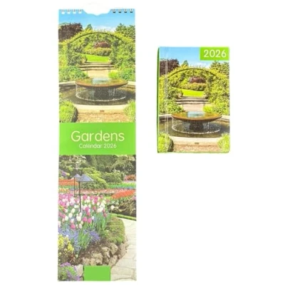 2026 Super Slim Month to View Calendar Flowers and Gardens - A Hook To Hang On The Wall + Pocket Diary This 2026 Traditional Calendar displays a month view per page, complete with a full-color photo Space provided on Each Day To Write Appointments & Special Dates - With all-important UK Dates included. Postal Envelope Included Within The Calendar USAGE: Perfect for home, office & school. Can hang on a wall Please note: calendar will be folded in half for postage purposes. When you receive it just unfold it and hang it for a short while and it will flatten out with the crease either disappearing or being very small