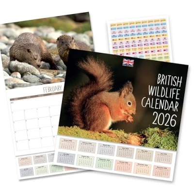2026 A4 British Wildlife Calendar UK. One Month to View. A3 when open. Wall by Absolutely Yours.