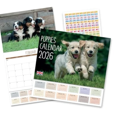 2026 A4 Puppies Calendar. One Month to View. A3 when open. Dogs Wall Calendar by Absolutely Yours.