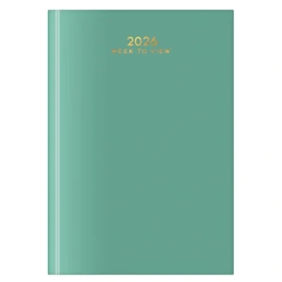 2026 A5 Week to View Diary : These hardback bound diaries are available in Dark Teal, Dusty Pink, Mustard Yellow or Pastel Green Week to View Layout : Plan your week effortlessly with a spacious, easy-to-read week to view layout. Includes hourly Appointment times from 8am to 5pm - Excludes Saturdays & Sundays Hardback Covers : The diaries come in classic colours with hardback covers to provide durability and ensure all your information is kept safe Full Year Coverage : This diary runs from 29th December 2025 to 3rd January 2027, providing over a full year of seamless planning UK Public Holidays & Notable Dates : Stay informed with UK public holidays, notable religious dates, and a variety of international details such as currency, time zones, and dialling codes Additional Planning Pages : Go beyond just a calendar with useful extra pages including note sections, sunrise and sunset times, moon phase tracking, and handy international details like currency, time zones, dialling codes, and year-to-view calendars for 2026, and 2027 A5 Size : Measuring 21cm x 14.7cm, this diary is designed for convenience, fitting easily into your handbag, backpack, or desk drawer. Ideal for on-the-go planning, whether you're at home, in the office, or traveling Ribbon Page Marker : Quickly find your current week with the attached colour matching ribbon page marker, ensuring you stay on track without losing your place Eco-Friendly : Made from FSC Mix paper, ensuring responsible forest management and environmental sustainability