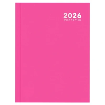 2026 A5 Week to View Diary Full Year Hardback Casebound Organiser Weekly Layout Planner for Home Office School & Work UK Focused Diaries with Colourful Covers (Bright Pink)
