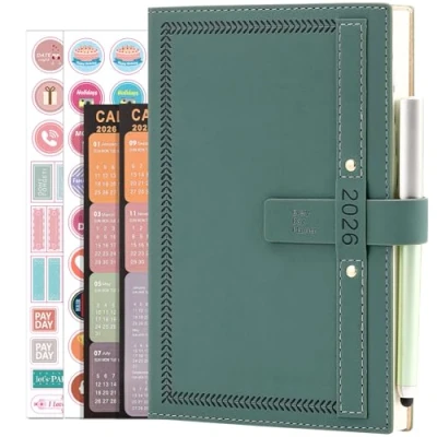 2026 Diary A5 Page a Day Full Year Planner, from Jan to Dec 2026, Daily Monthly Planner with Calendar, Pen, Pen Holder, Month Tabs, inner Pocket (Green)