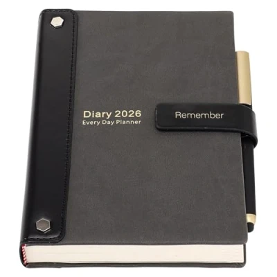 Diary 2026 Day per Page- Jan-dec diary 2026 ,monday to friday is one page a day (weekend on one page), A5 Diary 2026 day per page wtih time hourly schedules( 8:00 a.m. to 20: 00 p.m.For Accurate planning,the diary Includes all you need to plan and keep a note of all your appointments, finances, weight,months overview etc and then each day separate with lots of space to write,The agenda hardcover productivity daily planner with 8.27"x5.9" is a suitable size for your bag, so easy to carry it to work, study or travel. Practical functions - | Personal Data | 2026 2027 calendar | year planner 2026 | Health| |Account |Payment List |Address List |Graph Grid Paper | 12 Monthly Planner with to do | Magnetism Bound |Back Pocket |Pen Holder |Bookmarks | 80Gsm ivory paper|8.27inch x5.9inch A5| Great Time Management Planner-Plan your day with ease using the day-per-page layout and glance through the year with monthly views ,it has large spaces to write schedule, so you can stick down notes, ideas,task, meetings, appointments, Planning,etc. if you're a first timer, a pro,a procrastinator, You'll get more work done than ever before,maximise your productivity. Premium Thick Ivory Paper - Our premium pages reduce ink bleed, the 80Gsm acid-free ivory paper, makes it silky smooth to write on bringing you the ultimate writing experience, Diaries with quality Faux Leather cover Planner and Organiser for Office, Personal and Home -Daily . Mcdsuc Productivy Daily Planner 2025 -A5 day to day planner designed to integrate into your busy lifestyle, to help plan your day and maximise your productivity,Perfect as travel notebook, teen journals, to do list planner, work diary,travel diary business planner, study planner & daily journal,Women &Men Gift.
