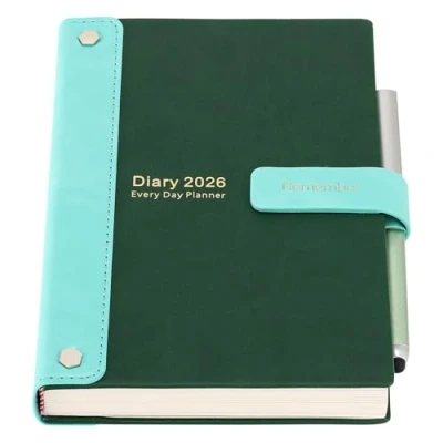 Diary 2026 Day per Page- Jan-dec diary 2026 ,monday to friday is one page a day (weekend on one page), A5 Diary 2026 day per page wtih time hourly schedules( 8:00 a.m. to 20: 00 p.m.For Accurate planning,the diary Includes all you need to plan and keep a note of all your appointments, finances, weight,months overview etc and then each day separate with lots of space to write,The agenda hardcover productivity daily planner with 8.27"x5.9" is a suitable size for your bag. Practical functions - | Personal Data | 2026 2027 calendar | year planner 2026 | Health| |Account |Payment List |Address List |Graph Grid Paper | 12 Monthly Planner with to do | Magnetism Bound |Back Pocket |Pen Holder |Bookmarks | 80Gsm ivory paper|8.27inch x5.9inch A5| Great Time Management Planner-Plan your day with ease using the day-per-page layout and glance through the year with monthly views ,it has large spaces to write schedule, so you can stick down notes, ideas,task, meetings, appointments, Planning,etc. if you're a first timer, a pro,a procrastinator, You'll get more work done than ever before,maximise your productivity. Premium Thick Ivory Paper - Our premium pages reduce ink bleed, the 80Gsm acid-free ivory paper, makes it silky smooth to write on bringing you the ultimate writing experience, Diaries with quality Faux Leather cover Planner and Organiser for Office, Personal and Home -Daily . Mcdsuc Productivy Daily Planner 2025 -A5 day to day planner designed to integrate into your busy lifestyle, to help plan your day and maximise your productivity,Perfect as travel notebook, teen journals, to do list planner, work diary,travel diary business planner, study planner & daily journal,Women &Men Gift.