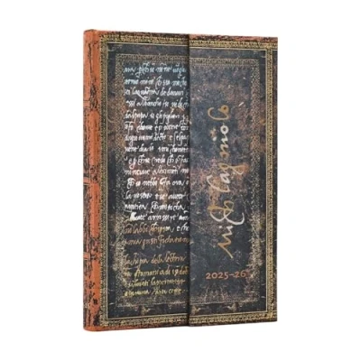 2026 Michelangelo Handwriting (Embellished Manuscripts Collection) Mini 18 month Horizontal Hardcover Flexi Dayplanner 2025 (Wrap Closure): Kalendarz miesięczny