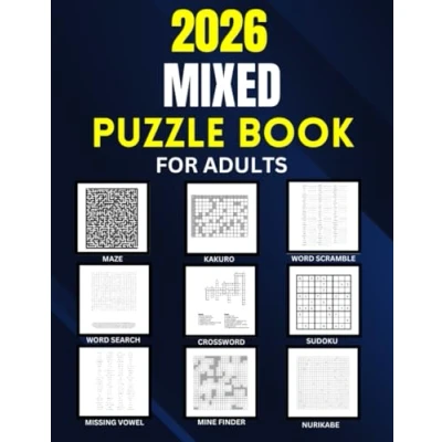 2026 Mixed Puzzle Book For Adults And Seniors 1900+ Puzzles: Word Search Crossword Sudoku Missing Vowel Mine Finder Scramble Maze Kakuro Nurikabe