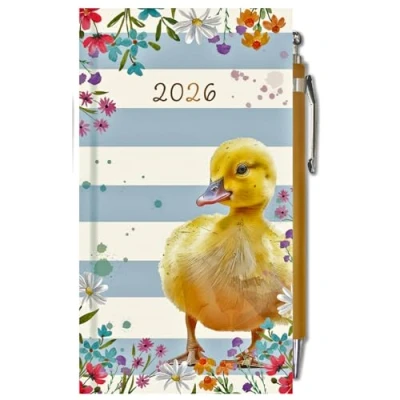 2026 Slim Week to View Diary with Pen Hardback Casebound Slimline Planner Ribbon Marker & Loop Full Year Runs Dec 2025 Jan 2027 L16cm x W8.7cm (Duckling)