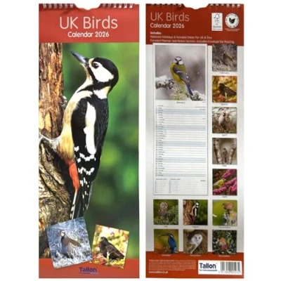 2026 Super Slim Month to View Spiral Bound Hanging Wall Calendar Home Office (Uk Birds)