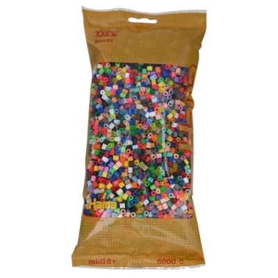 Bag with approx. 6,000 Hama beads in 52 different colours Contains 5 mm diameter midi beads, these are recommended for crafting with children aged 5 and up, ironing should be done by an adult Craft beads are versatile and are suitable for making pixel pictures, small figures or for stucking, sewing and threading Craft with beads promotes concentration, fine motor skills and creativity in a playful way Original Hama ironing beads and accessories are made of harmless plastic (free from plasticisers such as BPA and phthalates), Manufacturer: DAN Import