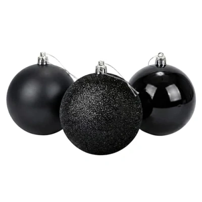 20cm/3Pcs Large Black Baubles PVC Shatterproof Glossy, Matt, Glitter Finish Christmas Balls Ornaments Assorted Set Festive Xmas Tree Hanging Decorations, Round Ornament for Holiday Home Decor