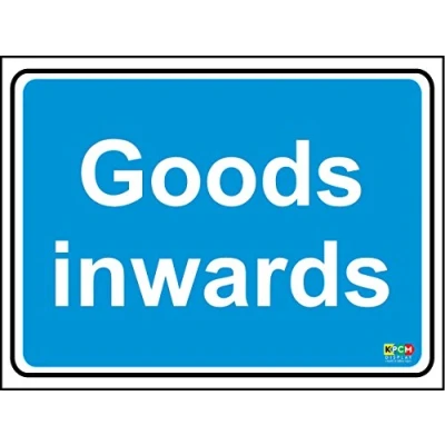 Goods Inwards Sign Self Adhesive vinyl 200mm x 150mm Remove backing film and apply to dry, smooth, oil free surface. Digitally printed and laminated for extra durabillity