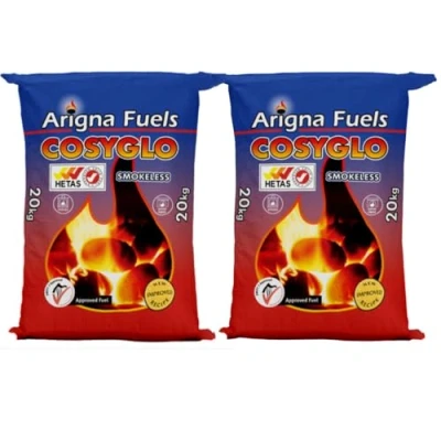 20kg & 40kg CosyGlo Smokeless Coal High Heat Output Low Ash Fuel For Open Fires Multi Purpose Stoves Fire Burner Boilers 2 x