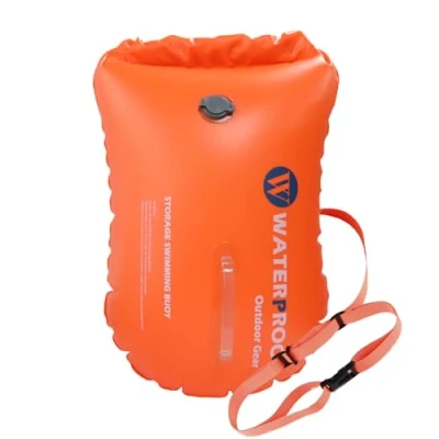 【Improving Design—Touchscreen And Magnetic Suction Seal】Unlike the old design, we have added touch screen waterproof bags to the swimming buoy, solving all problems. The touch screen function allows you to browse anytime and anywhere during swimming! We have also made improvements to the sealing of the storage bag by adding a magnetic suction port to ensure better sealing performance. 【High Visibility And Adjustable Strap】Swim buoy is bright orange with a fluorescent green belt, easily visible in open water to ensure your safety while swimming. Suitable for Open Water Swimmers, Triathletes, Kayakers and Snorkelers. 【Sturdy And Durable】Eco-friendly PVC material, environmental protection, non-toxic, safe and durable; The fabric is soft and comfortable, an easy-to-inflate nozzle that inflates quickly and easily. And is lightweight so it won't interfere with your swimming stroke and is easy to carry. Adjustable & removable waist belt can meet the needs of different waist sizes (fits size: 26" - 50"). 【Safe Place to Float and Rest】The swim buoy provides plenty of buoyancy and is a great place to rest if you get tired of swimming. You can grab the float and keep you safe, not a substitute for a PFD (personal flotation device) or swim life jacket. 【Storage Of Personal Items】This new swimming buoy has a waterproof storage compartment, separate from the inflatable compartment. You can put your items in the bag, such as phones, sunglasses, sunscreen, clothes, socks, and so on. The swim buoy can solve the storage problem of your personal belongings while swimming, ensuring the safety.