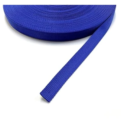 20mm Polypropylene Webbing Royal Blue 5 Metres. High quality heavy duty webbing, very strong and durable. Great for bags, handles, straps, backpacks, dog leads and collars. Breaking strain of 325kg and 1.8mm thick. Can be heat sealed to seal cut edges and prevention of fraying.