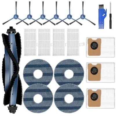 Perfect Compatibility: Replacement parts accessories compatible with Eufy Omni C20 Robot Vacuum. Package comes with 1 Main Brush, 4 Mop Pads, 6 Side Brushes,4 HEPA Filters,3 Dust Bags,1 Cleaning Tool,1Screwdriver. The accessories are made of premium material to ensure optimal performance. Please confirm your model before purchasing Main Brush & Side Brushe: The removable rubber main brush can sweep the dust into the dust bag with strong and excellent cleaning power. The side brushes can reach deep into corners and edges to remove even more stains and dust Mop Cloth Pad: Designed with upgrade round design, themop pad rotates at high speed to clean the stains thoroughly. Made of microfiber material, it has good water absorption and remove all types of stains, footprints and dust. Omni C20 mop cloth is designed for all sealed hard floors, such as wooden floors, tiles, laminate floors and marble floors Large Capacity Dust Bag: Omni C20 dust bag is made of high-quality melt-blown fiber and non-woven fabrics and has a dense structure to prevent dust leakage and protect your machine. 3.1L large capacity can collects and stores dust anbd debris for up to 60 days of hands-free cleaning HEPA Filter: The Omni C20 filter can capture 99% of debris, dust and other fine particle. It can be reused after washing with warm water and is recommended to be replaced every 3-6 months for high performance of Omni C20 robot vacuum