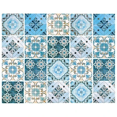 20PCS Tile Stickers Jagowa Moroccan Style Wall Self Adhesive Vinyl Waterproof for Kitchen Bathroom Decoration (6x6in, 15x15cm)
