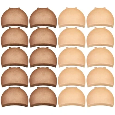 20Pcs Wig Caps, MORGLES 10 Pcs Light Brown Caps for Women & Dark Stretchy Stocking Nylon