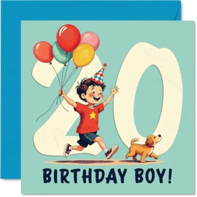 20th Birthday Cards for Men Balloon Boy Happy Card 20 Year Old Man Grandson Friend Cousin Nephew, 145mm Bday Greeting