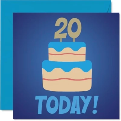 20th Birthday Cards for Men Blue Bday Cake 20 Today! Happy Card Year Old Man Cousin Friend Colleague Brother, 145mm Greeting
