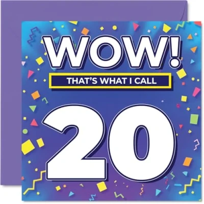 20th Birthday Cards for Men Women WOW Thats What I Call Happy Card 20 Year Old Man Woman Cousin Sister Uncle Daughter, 145mm Bday Greeting