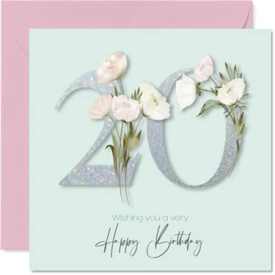 20th Birthday Cards for Women Fancy Floral Flowers Happy Card 20 Year Old Woman Friend Cousin Auntie Daughter, 145mm Bday Greeting