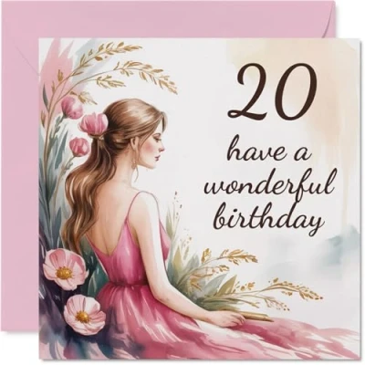 20th Birthday Cards for Women Flower Girl Happy Card 20 Year Old Woman Friend Sister Colleague Niece, 145mm Bday Greeting
