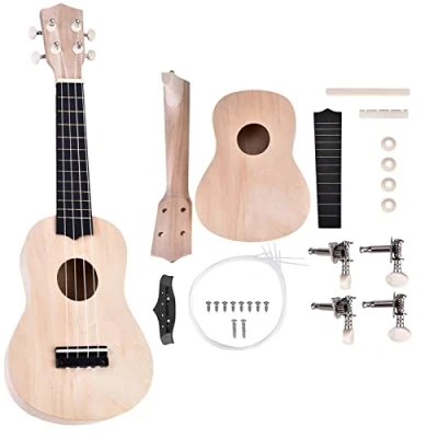 DIY Ukelele Kit: Our 21inch Basswood 4 String Ukelele DIY Kit is the perfect choice for music lovers who love hands-on projects. This kit includes all the necessary parts to assemble your very own ukelele, allowing you to personalise and customise your instrument to your liking. High quality basswood material: Our basswood ukelele is made from high quality basswood, ensuring a lightweight, safe and durable instrument. Basswood is known for its excellent tonal qualities and is very popular with musicians. Enjoy a rich and vibrant sound with this high quality material. Personalise your ukelele: The wood in our ukelele kit is unpainted, so you have the freedom to add your own personal touch. Whether you prefer a natural wood finish or want to let your creativity run wild with a custom lacquer finish, this kit gives you the opportunity to create a unique instrument that reflects your style. Engaging and skill-building: our Ukelele kit is both interesting and useful, making it a great project to engage with and improve your craft skills. Assembling your own ukelele not only offers a sense of accomplishment, but also encourages creativity and boosts confidence. Whether you're a beginner or a seasoned musician, this kit offers a fun and educational experience. Perfect for all ages: As well as being suitable for adults, the Ukelele DIY Kit is a fantastic way for children to play with their parents. It provides a wonderful opportunity for family bonding and musical discovery. By working together, you can share the joy of music and create lasting memories. Start your musical journey with our DIY Ukelele Kit and enjoy the harmonious melodies you can create.