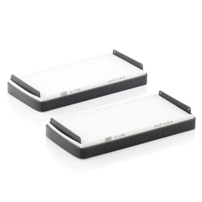 MANN-FILTER Cabin Air Filter CU 2745-2 (set of 2) / Dimensions (mm): A = 265; B = 124; H = 40 / Premium Filter in Original Equipment Quality High-quality MANN-FILTER cabin filters offer almost 100% protection against particles such as pollen, diesel soot and tyre abrasion - for a feel-good climate in the vehicle interior and protection of the air conditioning system Exact fit and perfect tightness ensure constant filtration performance during the entire service interval / Optimum vehicle interior ventilation due to the high air flow capacity Looking to find the correct filter? Select: brand, model, vehicle type, and engine type above to see which one fits your vehicle MANN+HUMMEL complies with REACH-regulation + supports the goal of Improved health and safety through the design, manufacturing, usage, disposal and recycling of our products