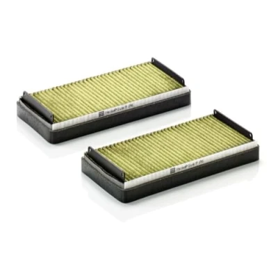 MANN-FILTER Cabin Air Filter FP 2745-2 (set of 2) / Dimensions (mm): A = 262; B = 124; H = 40 / Premium Filter in Original Equipment Quality Biofunctional MANN-FILTER FreciousPlus cabin air filters - nearly 100% protection against nitrogen oxides, dust, allergens and mould - harmful gases and unpleasant odours are also eliminated and virus aerosols filtered The three-layer filter technology absorbs almost 100% of allergens, reduces the growth of molds and bacteria by more than 98% and stops fine dust almost completely Looking to find the correct filter? Select: brand, model, vehicle type, and engine type above to see which one fits your vehicle MANN+HUMMEL complies with REACH-regulation + supports the goal of Improved health and safety through the design, manufacturing, usage, disposal and recycling of our products