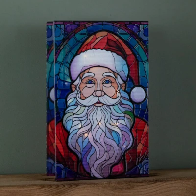 21cm Battery Operated Double Sided Stained Glass Santa Decoration with LEDs