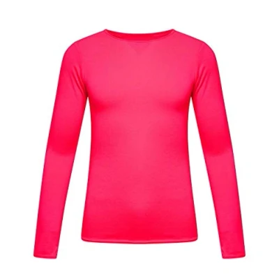 21Fashion Unisex Long Sleeves Round Neck Tshirt#(Neon Pink Plain Shirt#7 8 Years#Unisex)