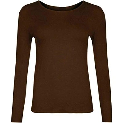 21Fashion Womens Long Sleeves Round Neck Tshirt#(Brown Plain Shirt#UK 8 10#Womens)