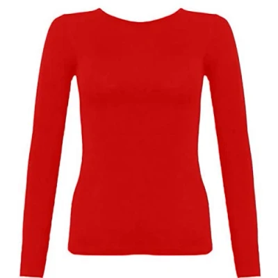 21Fashion Womens Plain Basic Top Long Sleeve Kids Girls Boys Uniform T Shirt Tops Red